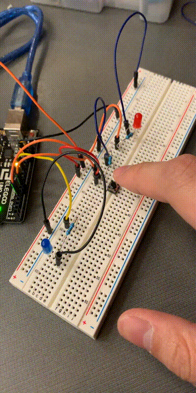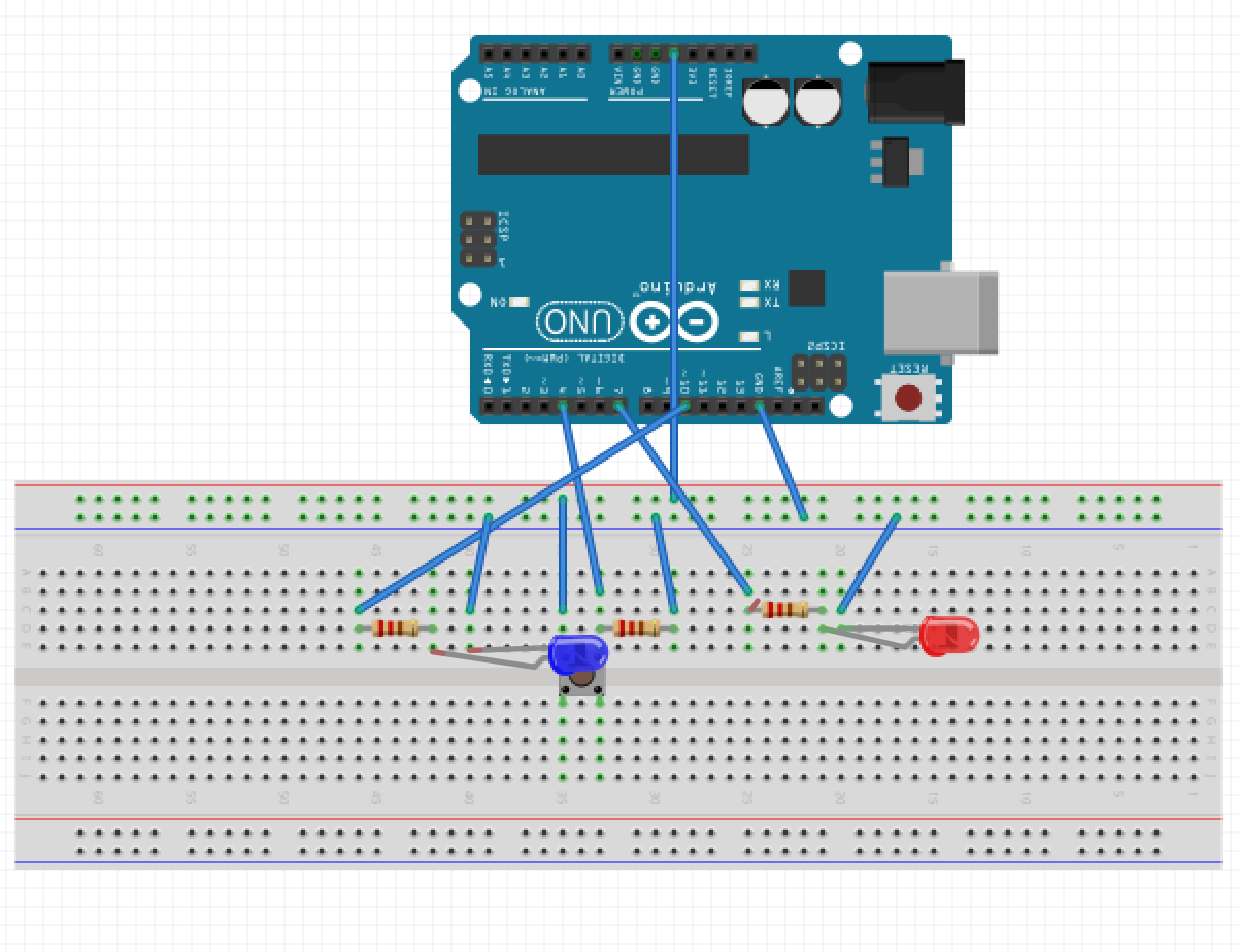 from the Arduino board pin modes (#7 and 10) and one input for the button (#4). Once the user pushes the switch button then
