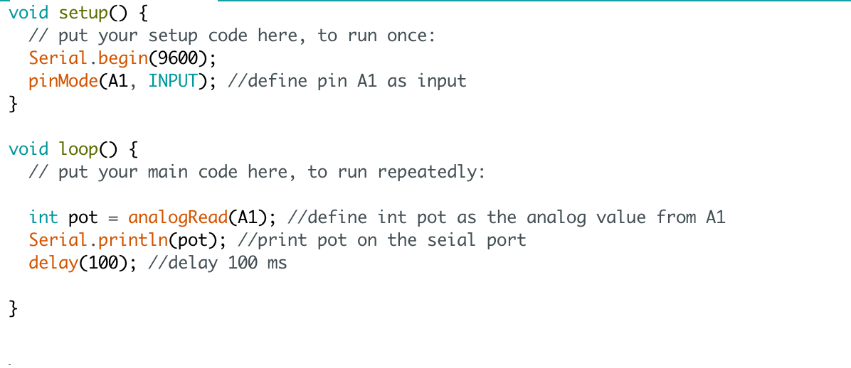 * AnalogRead() returns a number betwen 0 and 1023 and it is proportional to the amount of voltage being applied to the pin.